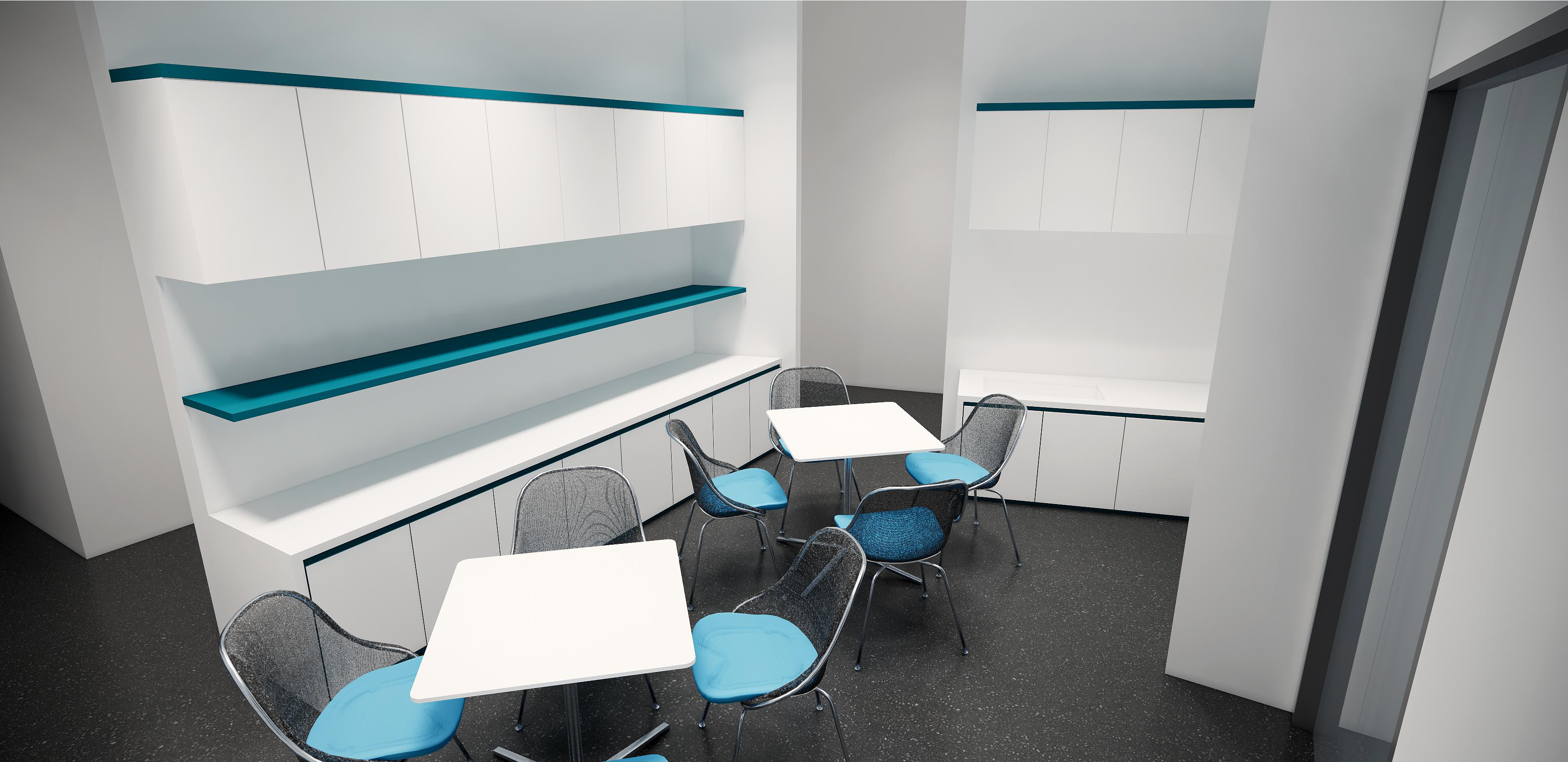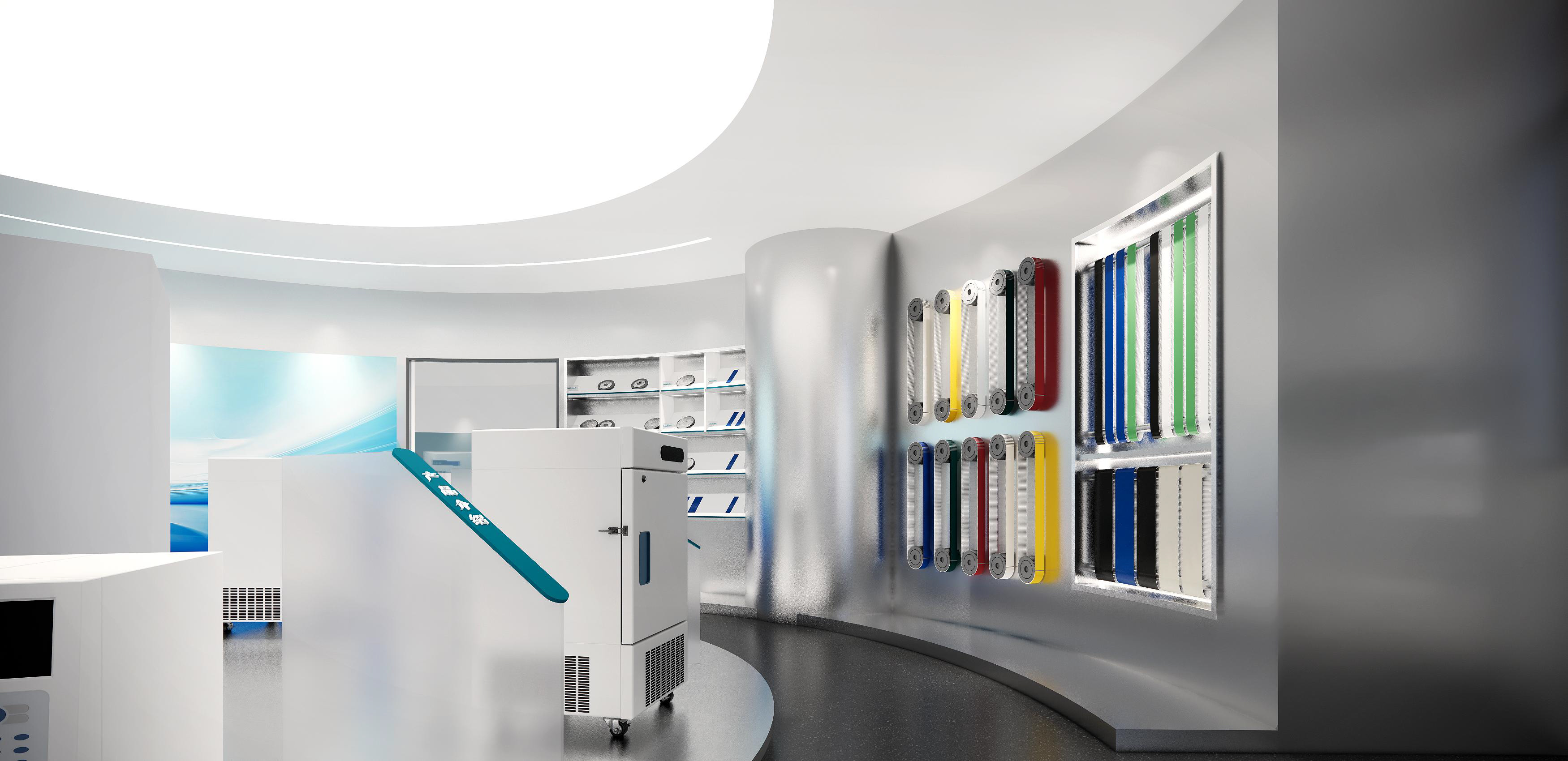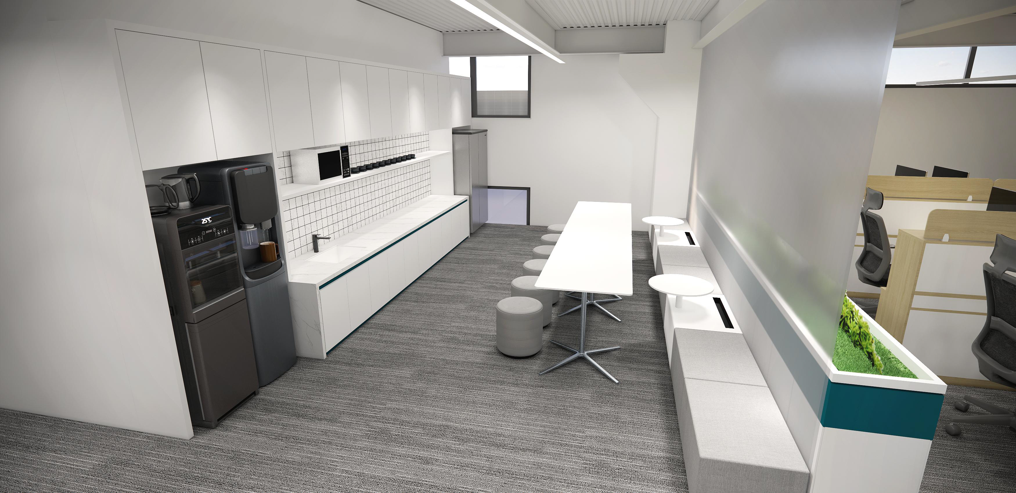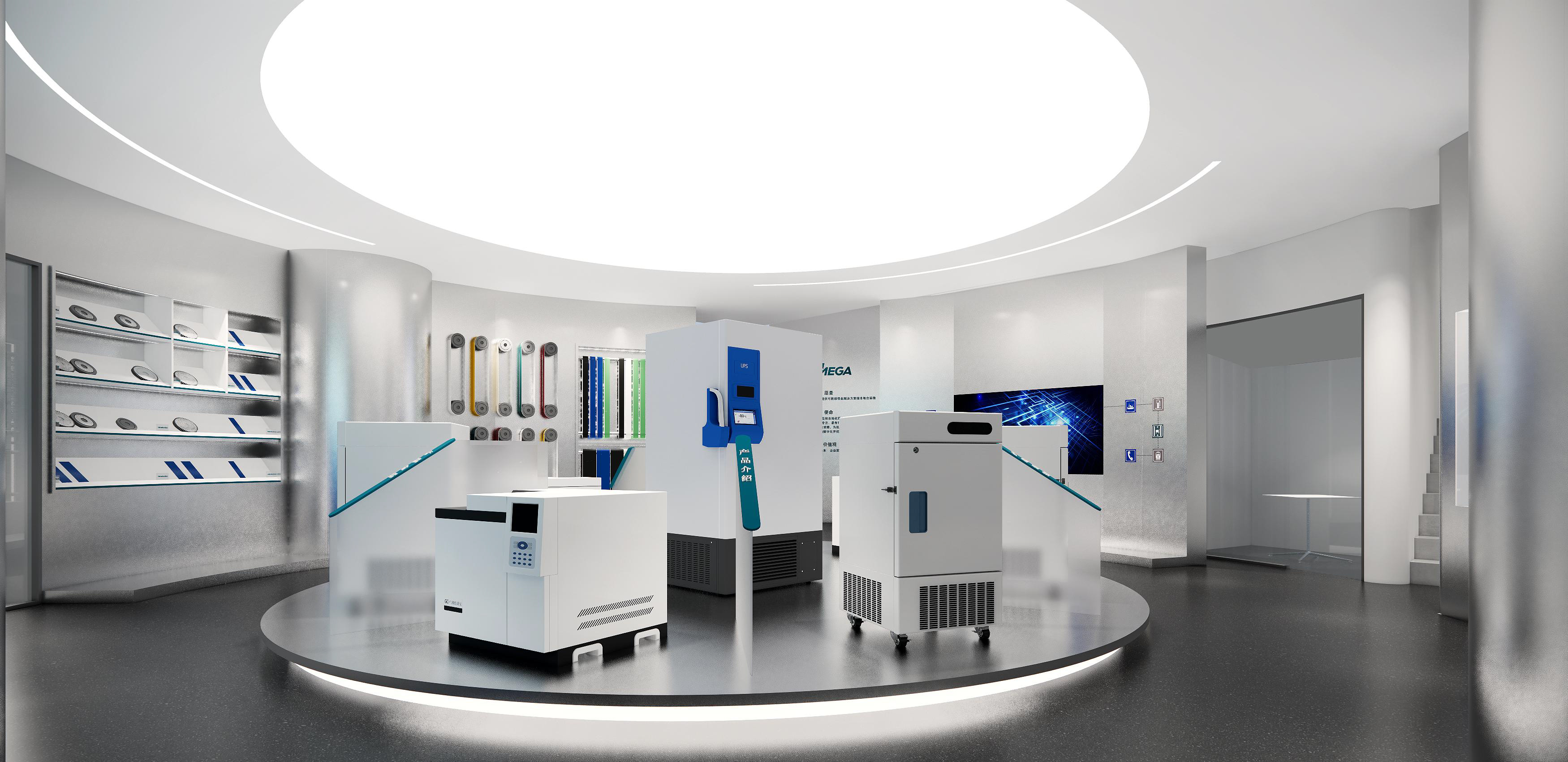墻面幾何線條的使用,突出現(xiàn)代感,同時(shí)增加動(dòng)感。冷色調(diào)墻面強(qiáng)調(diào)科技感,開(kāi)放式布局,空間更加通透、流動(dòng)。
