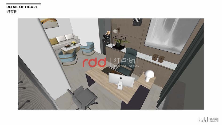 總經(jīng)理室及辦公區(qū)域,設(shè)計(jì)師巧妙地運(yùn)用柜子的設(shè)計(jì),使柜子兼具裝飾和儲(chǔ)存的功能,配合家具的搭配,讓整個(gè)空間看起來(lái)既沉穩(wěn)大方,也不失時(shí)尚。