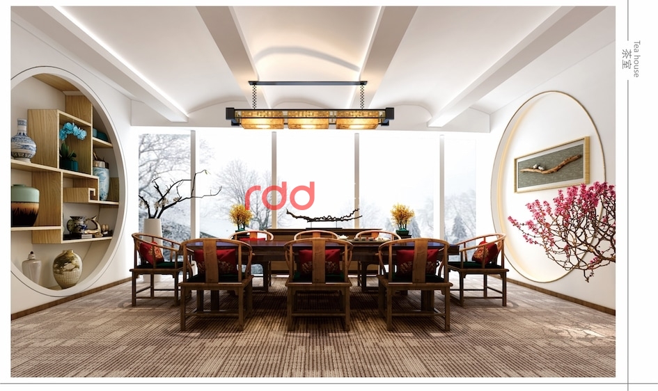 網絡科技公司在很多人概念里應該是空間科技感比較強的公司,但紅點裝飾的設計師反其道而行之。進入前臺大堂,波浪形的天花吊頂,玫瑰金包邊的雙圓形大吊燈,與地面圓形地花相互輝映。加上流線感極強的造型前臺,仿佛進入了船艙的駕駛室。