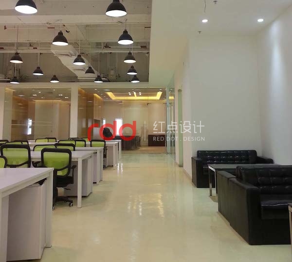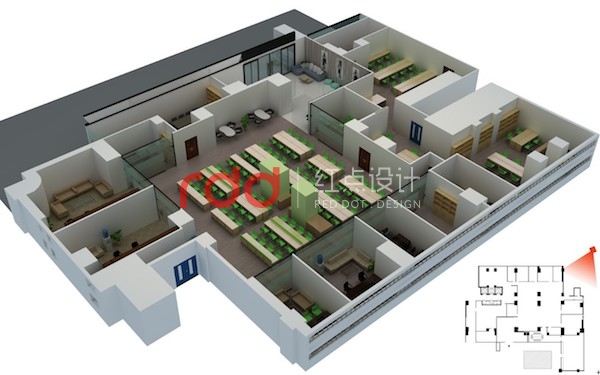 辦公區(qū)內,以綠色的辦公家具作點綴。