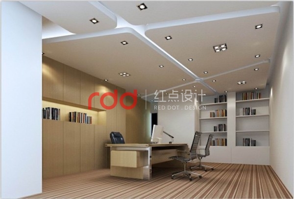 總經(jīng)理辦公室以整體木飾面柜子為背景,簡單時尚的造型天花。