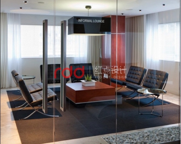出于這樣一個(gè)原因,紅點(diǎn)裝飾的設(shè)計(jì)師以黑白及木色為主色調(diào),設(shè)計(jì)上沒(méi)有過(guò)多的造型,每一個(gè)造型,每一堵墻,甚至每一條線都經(jīng)過(guò)推敲。為了提升空間高大上的氣質(zhì),選用了高檔的家具,流線型的桌子,洽談室內(nèi)還用了建筑大師密斯凡德羅的經(jīng)典作品--巴塞羅那椅。