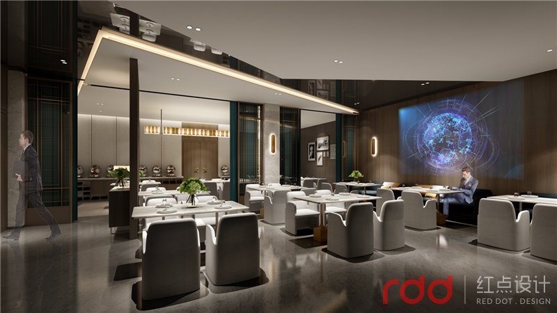 廣州紅點(diǎn)設(shè)計(jì)以人與人和諧相處,人與人沒有隔閡共同工作、生活、就餐在一個場域?yàn)榈睦砟顬榘馗呔频晷蓍e餐吧設(shè)計(jì)方案