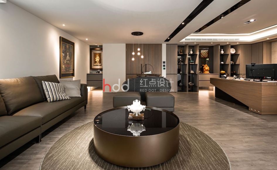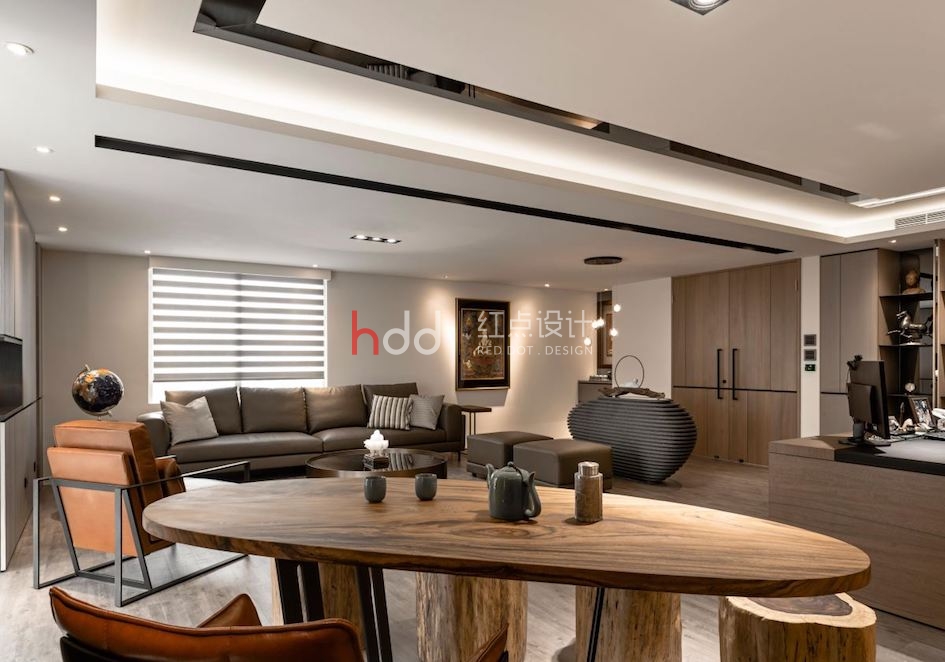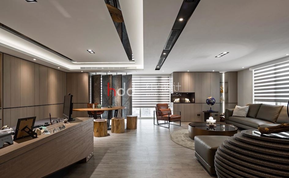 專屬辦公間內,則猶如小型版的豪宅客廳,借由辦公桌、接待區與品茗區的各自鋪排,置入豐富的使用機能,并綴上沉穩建材肌理、明亮舒適的采光效果,體現高層主管的名家氣度! 會議區兼具員工休憩主題,于靠窗處安排一整排休閑吧臺,讓員工能夠沉浸綠意、感受天空,獲得工作時的放松喘息!