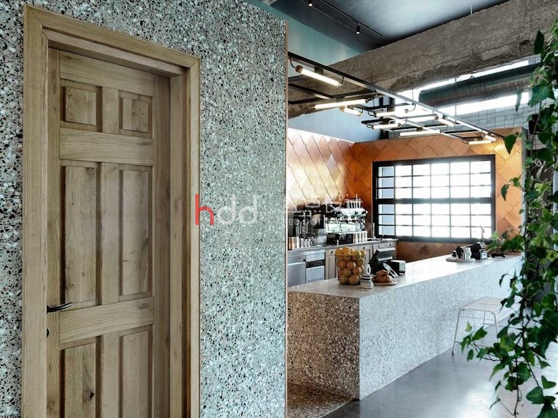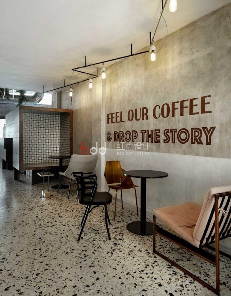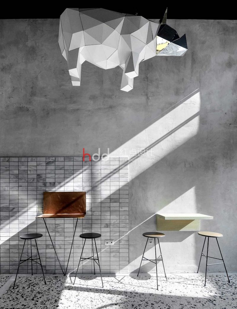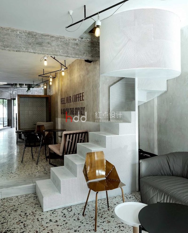 幾何線條和意想不到的元素出現(xiàn)在了這家名為Black Drop的新咖啡廳設(shè)計(jì)里,咖啡廳位于希臘北部城市卡瓦拉的中心位置,這個(gè)咖啡廳空間設(shè)計(jì)融合了城市當(dāng)代風(fēng)格與工業(yè)美學(xué),為顧客提供了一個(gè)新的選擇,以滿足他們的咖啡因欲望。咖啡廳空間里的水磨石地板和一層一層的東西給室內(nèi)帶來(lái)了一種古老的、溫馨的元素,而天花板和墻壁上的暴露的水泥梁則增加了前所未有的“工業(yè)”觸感。