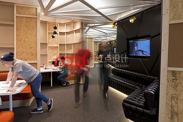 豐富有趣的場(chǎng)景真的一一實(shí)現(xiàn),包括隨性的座位或沙發(fā),以及一面宛如星光大道的YouTube名人堂走道,還有全部由公司內(nèi)部制作并可以立即制播、放送到各角落平面螢?zāi)坏膶I(yè)設(shè)計(jì);另一邊有著天鵝絨簾幕的電影放映室,放著舒適抱枕的軟墊沙發(fā)、皮椅;”造物主空間”( Creator Space )是設(shè)計(jì)師的一個(gè)心意,讓 YouTube 內(nèi)部的所有”制片人”盡情享受這個(gè)辦公室的神奇創(chuàng)作過程。這些照片中只是幾個(gè) YouTube 創(chuàng)意辦公室設(shè)計(jì)的亮點(diǎn),好玩的細(xì)節(jié)得要各位睜大眼睛搜尋。透露給大家, Freshmore 團(tuán)隊(duì)最喜歡的設(shè)計(jì),是那間復(fù)制了英國家喻戶曉的電視人物 Del Boy 家的客廳。如果是你,最能提高工作斗志的又是哪個(gè)場(chǎng)景?