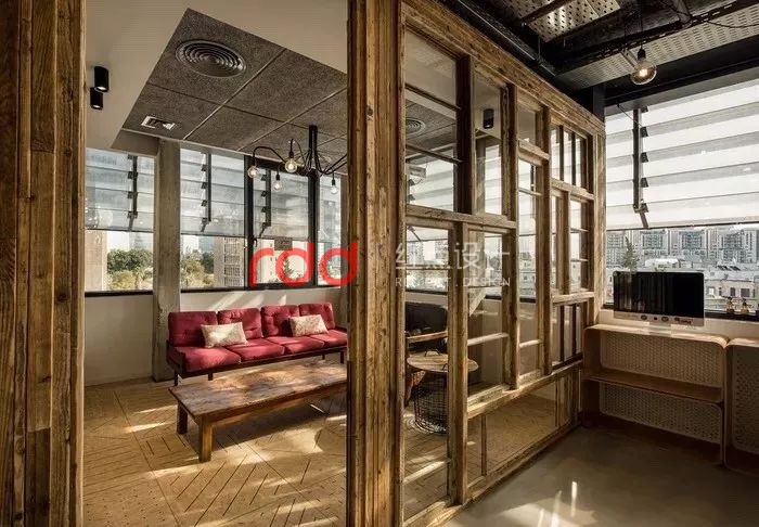因此整體環境氛圍非常復古,混凝土墻壁與木質家具相得益彰。